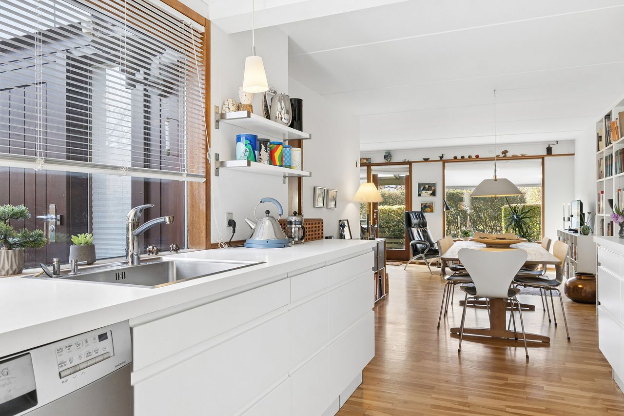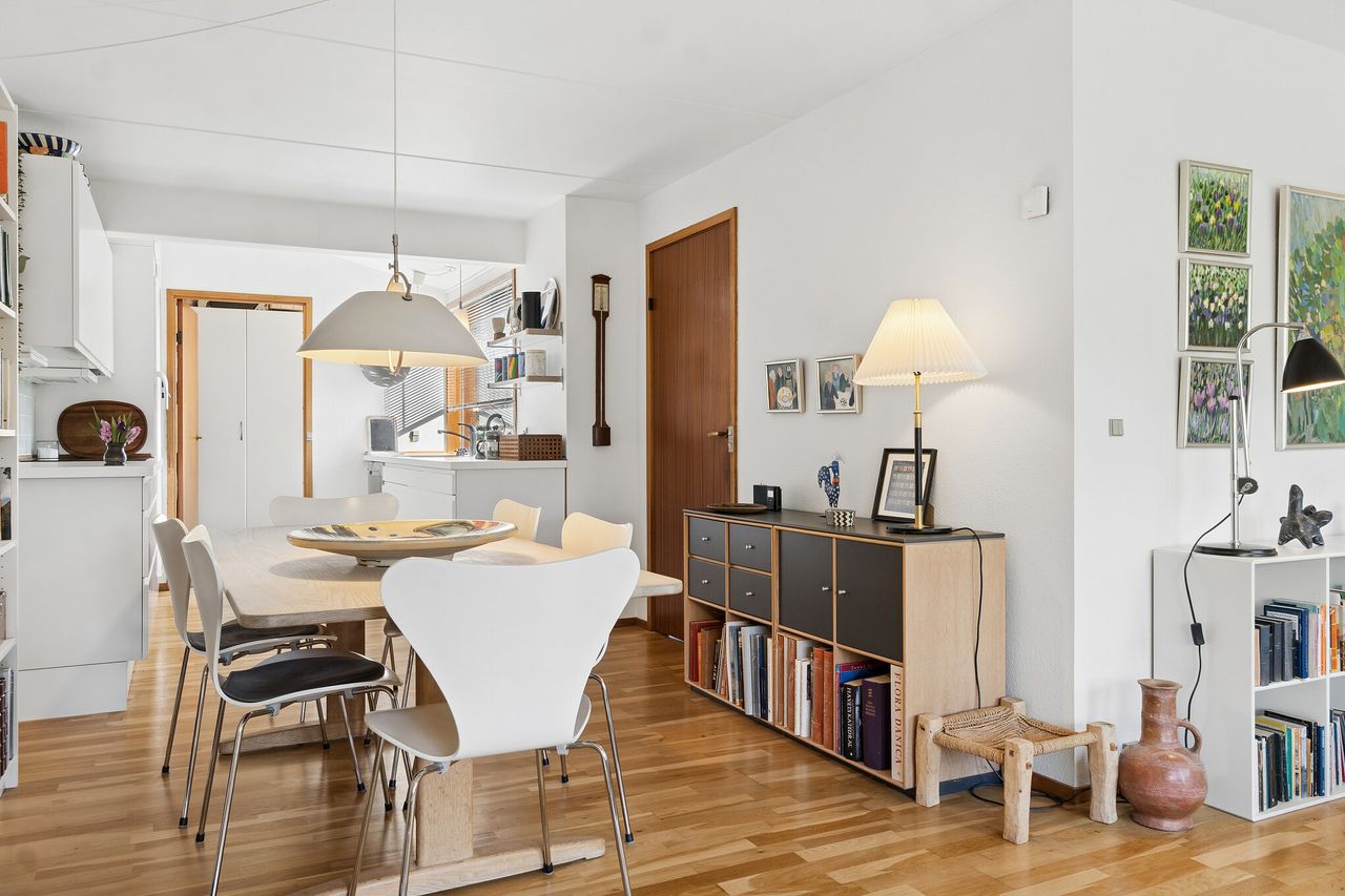 Velkommen til et indbydende enderækkehus i to fulde plan med en attraktiv og central beliggenhed tæt på byliv, indkøb og hverdagens bekvemmeligheder. Boligen bærer tydeligt præg af Johan Christensens arkitektur, hvor de varme trædetaljer i blandt andet vindueskarme, dørkarme og trappen skaber en rød tråd og en særlig atmosfære i hjemmet.