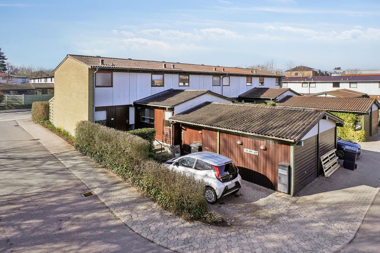 Udendørs får I glæde af både garage og et rummeligt opbevaringsskur med god plads til værktøj, cykler og sæsonudstyr. På husets forside finder I desuden en hyggelig morgenterrasse, hvor dagens første kop kaffe kan nydes i rolige omgivelser. Som enderækkehus har I kun én direkte nabo, hvilket giver en mere privat og rolig placering i bebyggelsen.