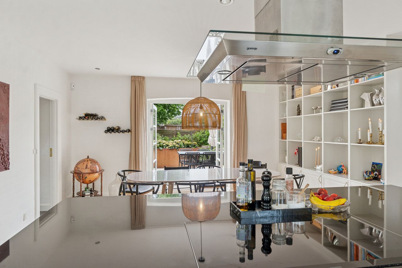 Huset er bygget med kvalitet i hver detalje: fuldmurede vægge, gulvvarme overalt, energiruder og højt til loftet. Klassisk stil møder moderne komfort i rum, der er lyse og åbne. Den store stue er samlingspunkt om aftenen men køkken/alrummet er ubetinget hjemmets hjerte – et sted til samtaler, madlavning og hyggelige stunder med spil, grin og venner. I får også tre værelser, heraf ét med walk-in og med to badeværelser er der plads til alle de travle morgener. Den oprindelige garage er tænkt ind som et kæmpe bryggers, bygget i samme høje kvalitet som resten, og det gør hverdagen lettere for familien der søger plads og moderne løsninger.