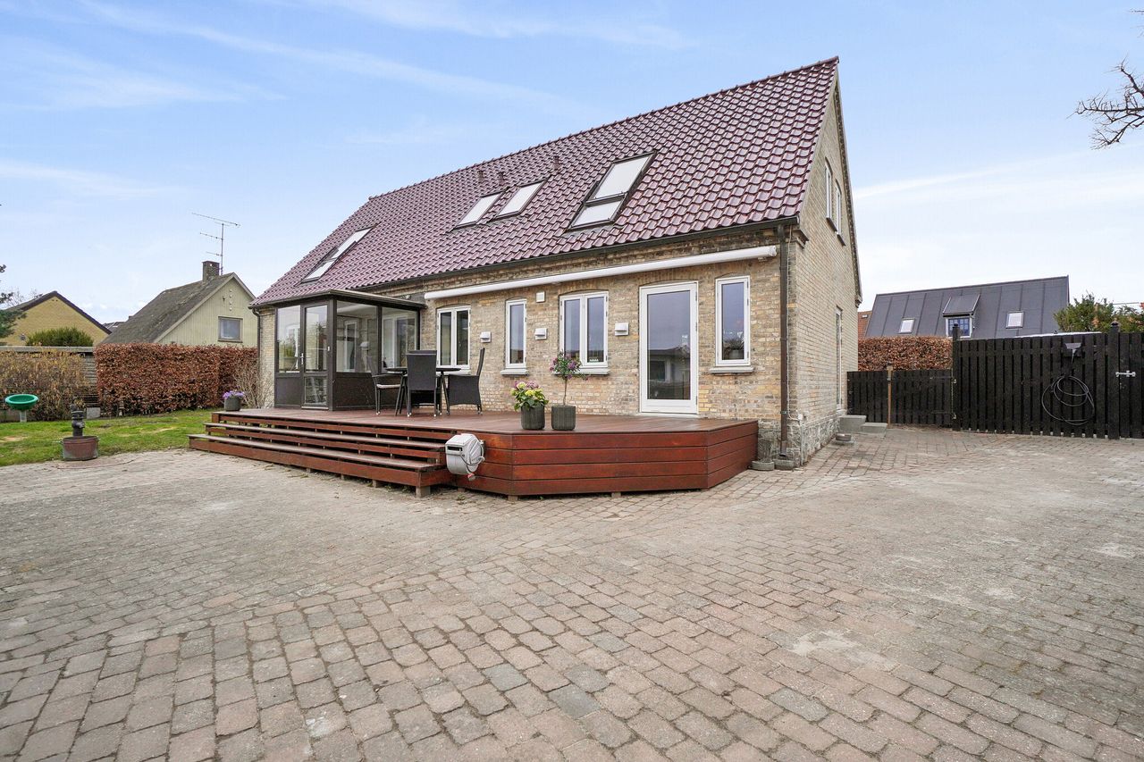På førstesalen åbner boligen sig med en stor repos med karnap, der sikrer et fantastisk lysindfald og giver oplagte muligheder for hjemmekontor, opholdsrum eller legeområde. Etagen rummer desuden et stort og elegant badeværelse samt tre gode værelser, alle med altanvinduer fra Velux. To af værelserne har smukt kig til Roskilde Domkirke, og to byder på hver deres walk-in-rum. De fritlagte bjælker tilfører et karakterfuldt udtryk, der på smukkeste vis understreger husets sjæl og historie.