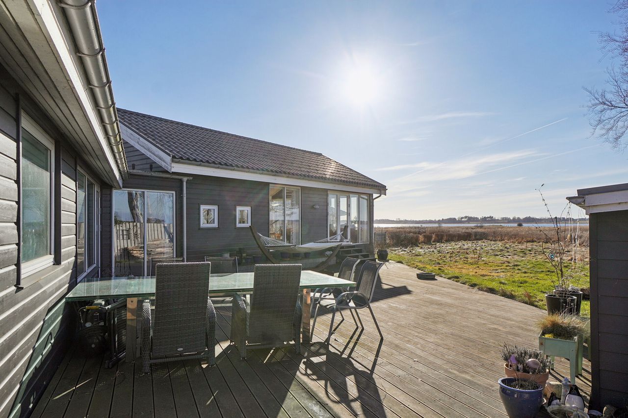 Ejendommen ligger højt og giver en enestående følelse af tryghed med udsyn over området. Den vestvendte terrasse og have indbyder til solbadning og afslapning, og udnytter solen fuldt ud. Et naturskønt fristed året rundt, med fantastiske solnedgange, som et nyt maleri hver eneste aften, og let adgang til vandet.
