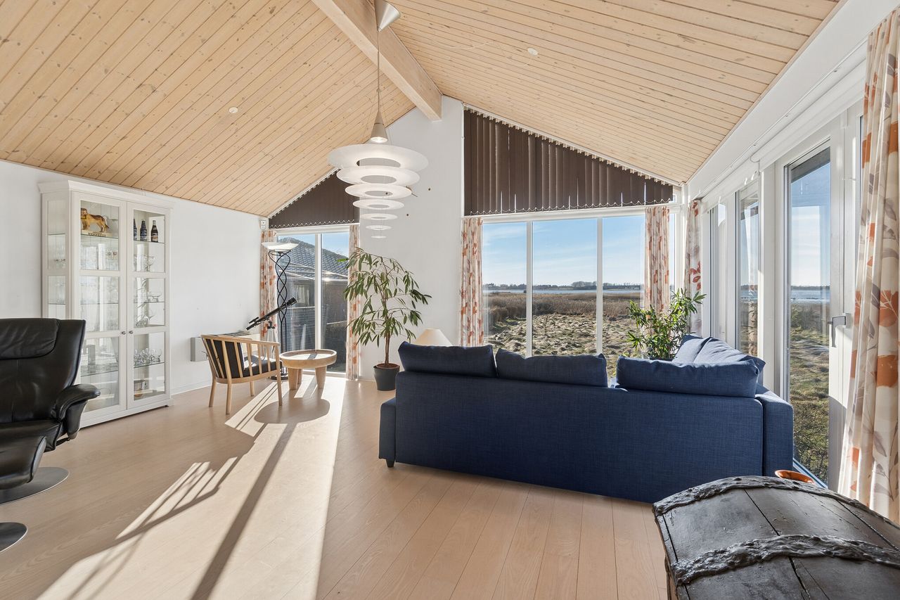 Stuen er fyldt med naturligt lys fra store vinduespartier, der samtidig sikrer en uforstyrret panoramaudsigt over vandet – et sted, hvor man virkelig kan lade sig inspirere af omgivelserne. Huset rummer et badeværelse samt et ekstra toilet, med mulighed for nemt at genetablere et ekstra bad – perfekt til familielivet eller gæster.
