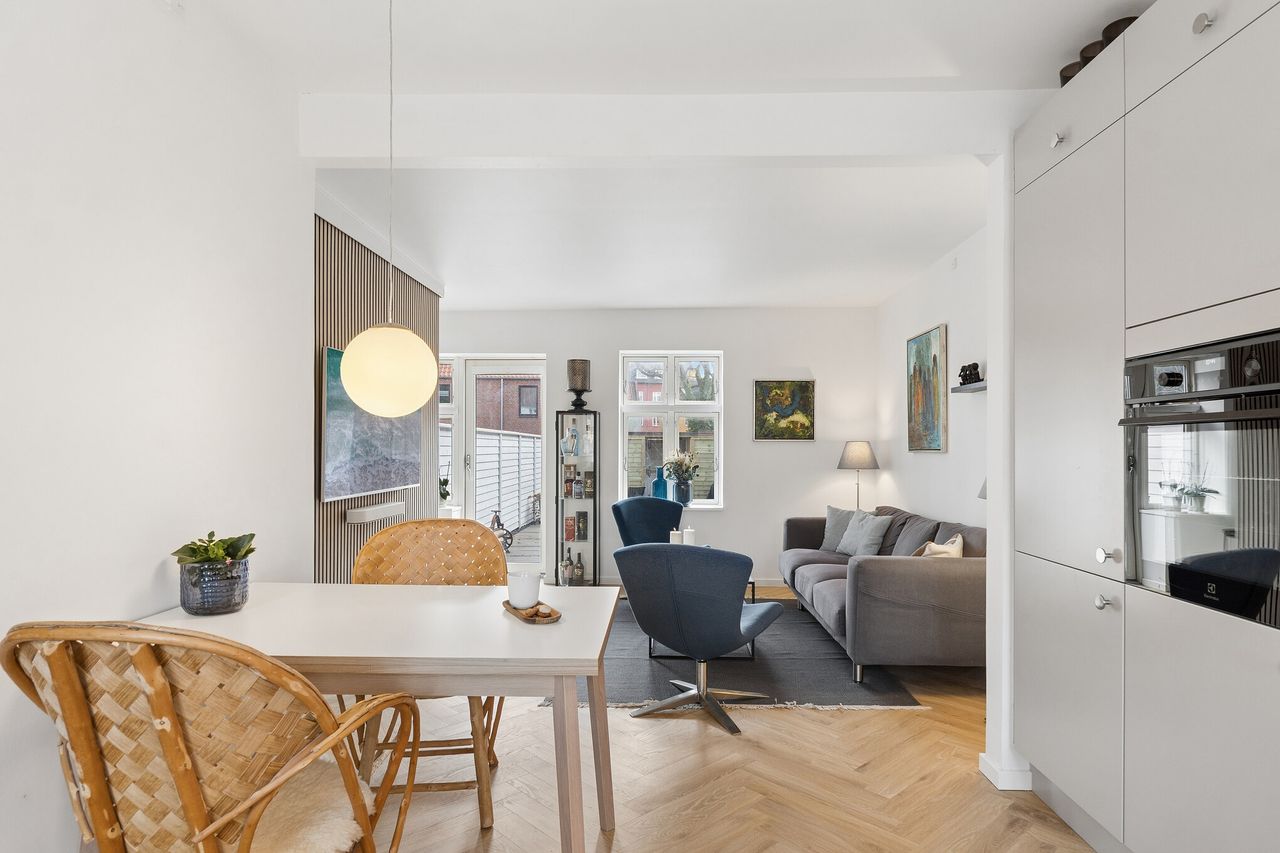 Boligen rummer 74 m² som er blevet moderniseret gennem de seneste år og fremstår lys og indbydende. Stueplanet byder på et lækkert køkken, med plads til spisebord, i åben forbindelse med stuen. Herfra er der direkte adgang til den lukkede gårdhave, der fungerer som et hyggeligt og privat uderum.