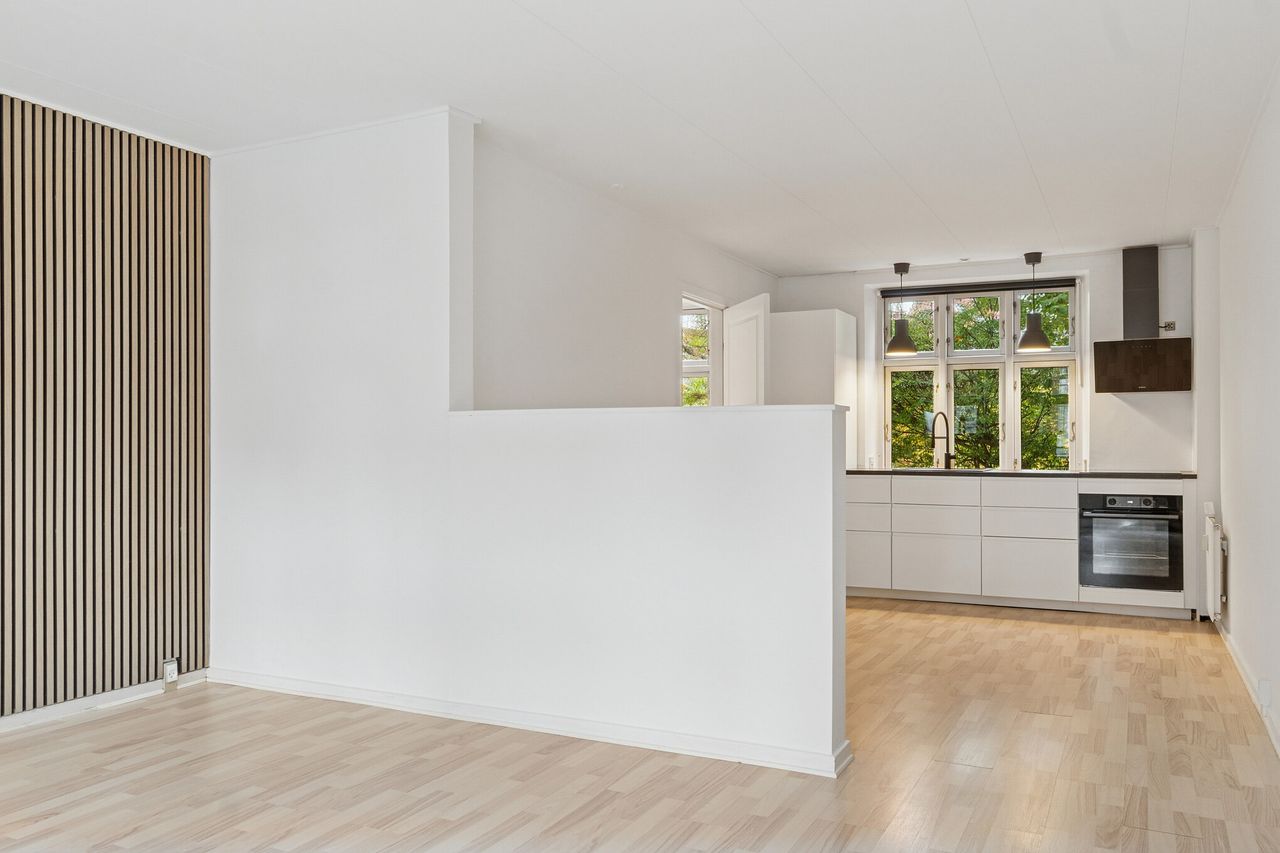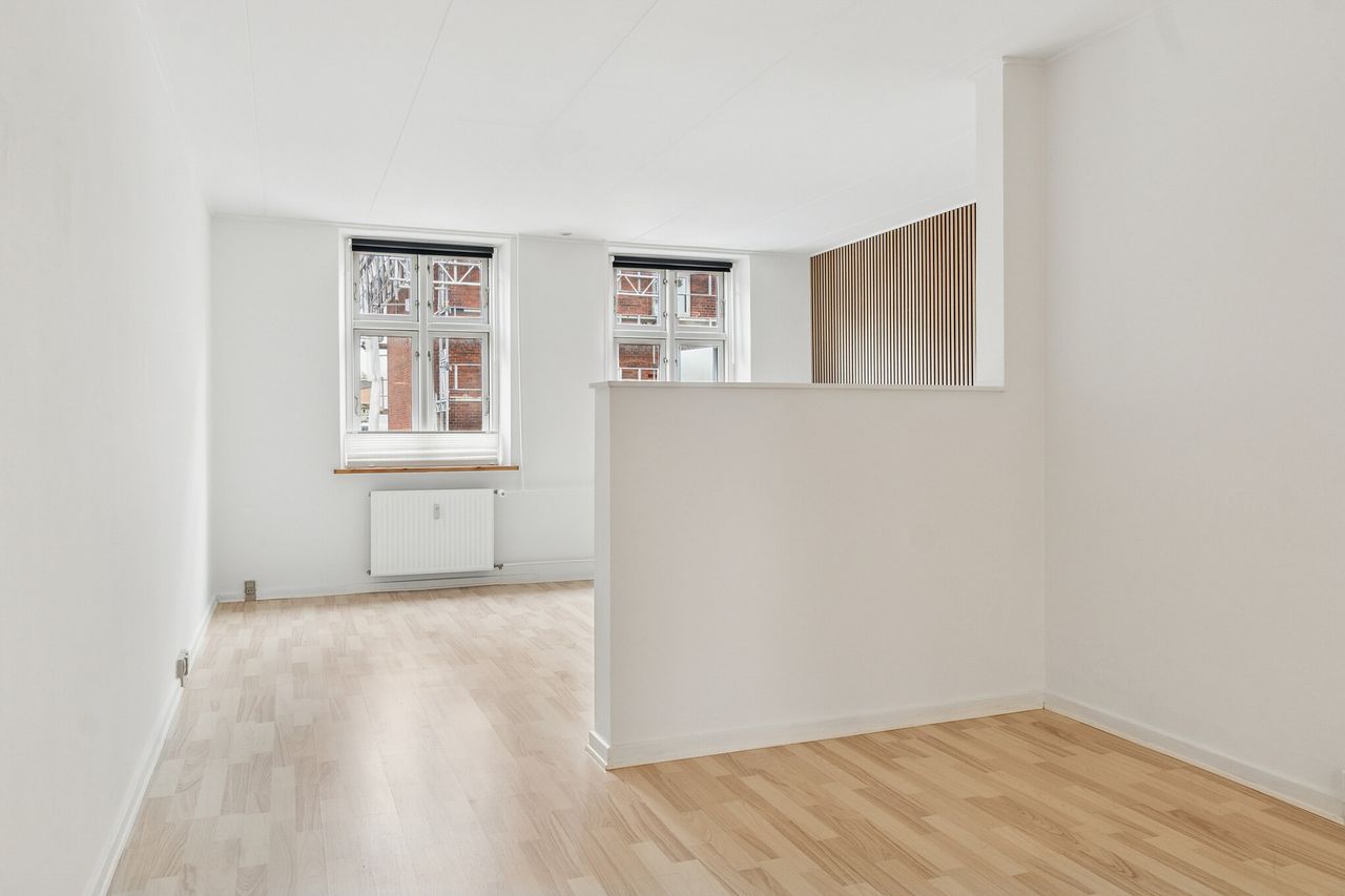 Her får du en bolig med Roskildes byliv lige uden for døren. Gågaden med caféer, shopping og indkøbsmuligheder ligger blot et stenkast væk og offentlig transport finder du lige så tæt på – perfekt til dig, der ønsker at bo centralt med alt inden for rækkevidde. Her er det nemt at kombinere hverdagens praktiske gøremål, med Roskildes charmerende karakter i byens hyggelige stræder.