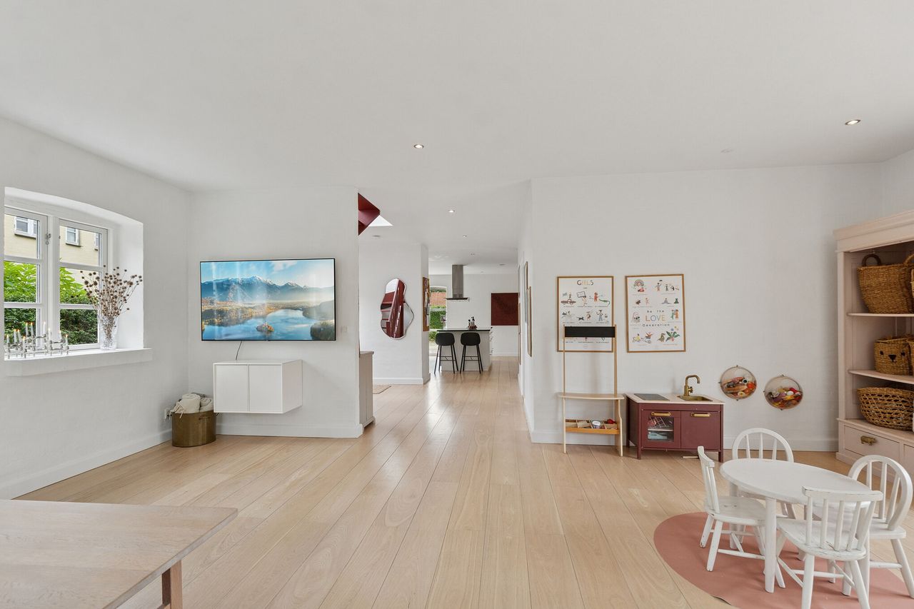 Forestil jer at vågne op til fuglesang på en stille villavej i Herringløse – en landsby, hvor idyllen lever side om side med den moderne families behov. Her ligger en villa, der ikke bare er et hus, men en ramme om livet i landsbyidyl man heldigvis stadig kan finde. Med hele 266 m² under tag er der plads til drømme, til hverdagen og til alt det imellem.