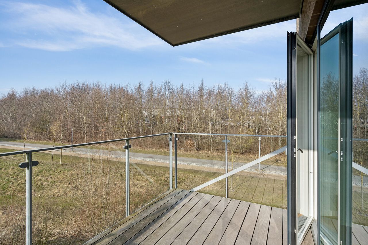 Gennem ejerforeningen kan I leje det rummelige fælleshus med mulighed for gæsteovernatning. Rundt om ejendommen finder I grønne fællesarealer med kunstneriske elementer og vandløb til en mindre sø, hvor I kan nyde de rolige omgivelser. Til lejligheden hører desuden en fast parkeringsplads.